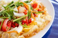 Salad telur goreng ini rasanya gurih, asam segar dan sedikit pedas. Cocok dimakan dengan nasi putih untuk sarapan. Dijamin mata melek!source https://food.detik.com/read/2020/08/05/111426/5120870/370/resep-salad-telur-goreng-ala-thai-yang-segar-buat-sarapan